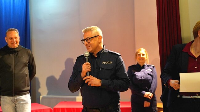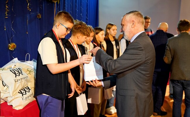 Nagrody rzeczowe wręczali włodarze gmin, Wójt Gminy Dobrcz - Pan Rafał Modlisz, Wójt Gminy Sicienko - Pan Piotr Chudzyński oraz zastępca Burmistrza gminy Koronowo - Pan Krzysztof Zająkała oraz pozostali partnerzy konkursu: Dyrektor Banku Spółdzielczego w Koronowie - Pani Dorota Jaworska, Prezes Zarządu Okręgu Polskiego Zawiązku Motorowego w Bydgoszczy - Pan Jacek Wojciechowski, LTK Wyczół Gościeradz z prezesem Bartoszem Zwolanowskim na czele oraz państwo Justyna i Robert Opertowscy - właściciele firmy transportowej „Opertowski Transport”.