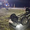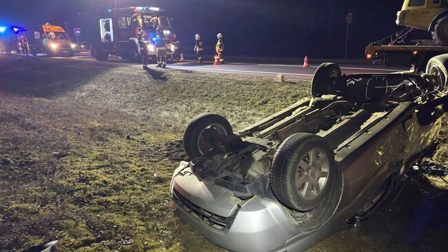 W wyniku zderzenia samochód osobowy wypadł z drogi, wpadł do rowu i dachował. Na szczęście kierowca pojazdu opuścił auto o własnych siłach jeszcze przed przybyciem służb ratunkowych.