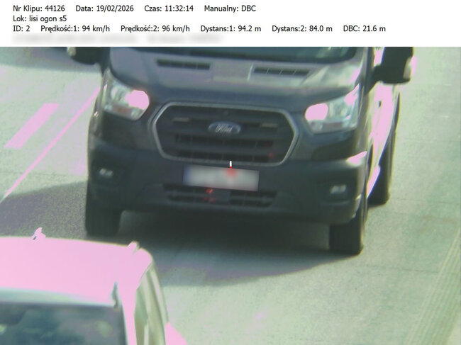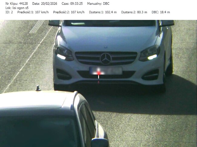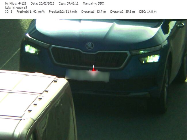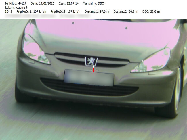 Do działań, które odbyły się w miniony czwartek i piątek (19 i 20.02.26) mundurowi wykorzystali urządzenie TruCAM II wyposażone w funkcję DBC (Distance Between Cars). Umożliwia ono precyzyjny pomiar odległości między pojazdami.