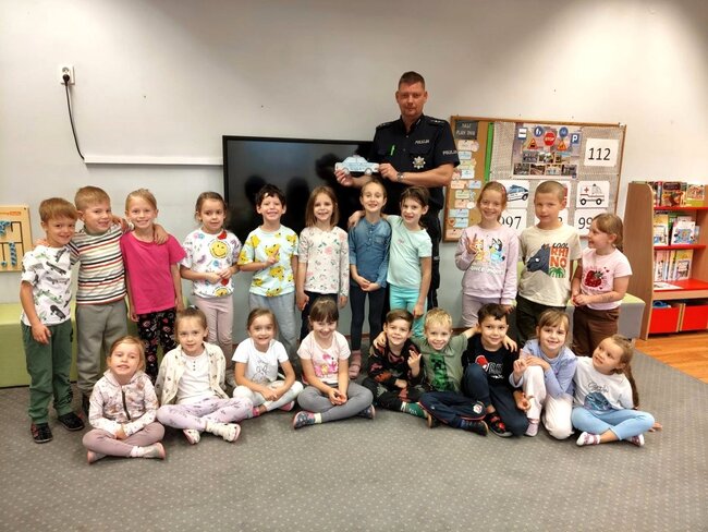 Zajęciom towarzyszyła miła atmosfera, a przedszkolaki z dużym zaangażowaniem brały udział w ćwiczeniach. W podziękowaniu za przeprowadzone zajęcia wręczyły dzielnicowemu własnoręcznie wykonane laurki.