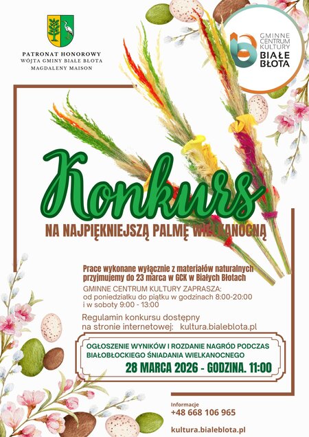 Rozstrzygnięcie konkursu i prezentacja wszystkich palm odbędą się podczas wspólnego Śniadania Wielkanocnego w Białych Błotach, planowanego na 28 marca 2026 roku.